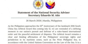 Statement of the National Security Adviser Secretary Eduardo M. AΓ±o 26 March 2026 | Manila, Philippines