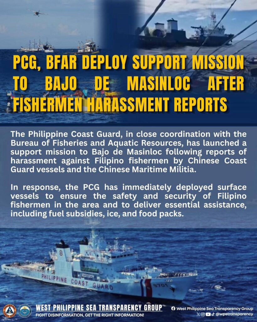 The PCG, in coordination with the Bureau of Fisheries and Aquatic Resources (BFAR), said the ๐ฆ๐ข๐ฌ๐ฌ๐ข๐จ๐ง ๐ข๐ฌ ๐ญ๐จ ๐๐ง๐ฌ๐ฎ๐ซ๐ ๐ญ๐ก๐ ๐ฌ๐๐๐๐ญ๐ฒ ๐๐ง๐ ๐ฌ๐๐๐ฎ๐ซ๐ข๐ญ๐ฒ ๐จ๐ ๐ ๐ข๐ฅ๐ข๐ฉ๐ข๐ง๐จ ๐๐ข๐ฌ๐ก๐๐ซ๐ฆ๐๐ง and to deliver essential support, including fuel subsidies, ice, and food packs.