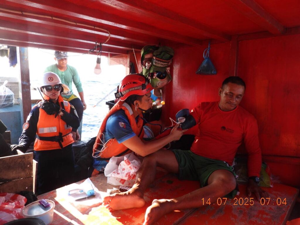 On July 13, 2025, at 12:10 PM, BRP TERESA MAGBANUA (MRRV-9701) received an urgent report regarding the F/B GREY ERRON, which had become dead in the water due to clutch disk transmission failure. The vessel, with eight crew members onboard, was in distress, and one crew member was suffering from a swollen leg due to arthritis.