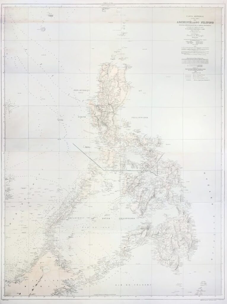 The 1875 Carta General is one of the most complete and detailed official Spanish maps of the Philippine archipelago. It clearly depicts important Philippine territories, including: • Los Bajos de Paragua (the reef systems historically associated with the Spratly Islands, now known as Palawan’s Kalayaan Island Group) • Panacot (also called Bajo de Masinloc or Scarborough Shoal off the coast of Zambales)